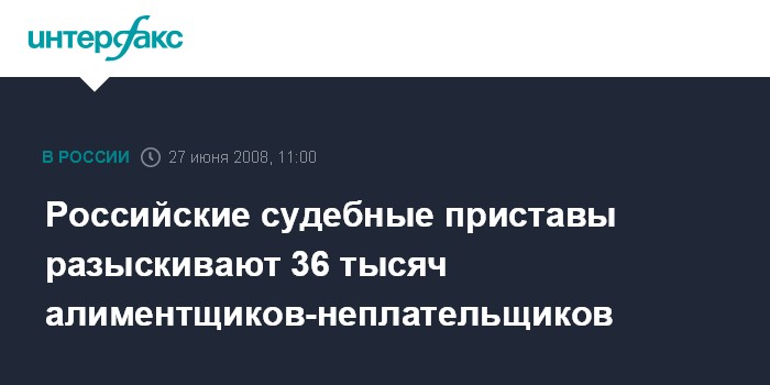 Москва. 27 июня. INTERFAX.RU - Федеральная служба судебных приставов (ФССП) разыскивает 36 тыс. неплательщиков алиментов. "В настоящее время в так называемом гражданском розыске находятся 36 тыс. злостных неплательщиков алиментов", - сообщил заместитель главы ФССП Артур Парфенчиков на "круглом столе" в пятницу в Москве.