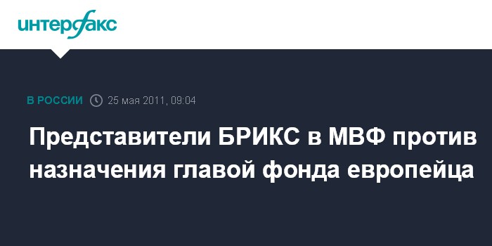 Москва. 25 мая. INTERFAX.RU - Исполнительные директора, представляющие в Международном валютном фонде (МВФ) Бразилию, Россию, Индию, Китай и Южную Африку, выступают против того, чтобы выбор следующего руководителя организации проводился по страновому признаку.
