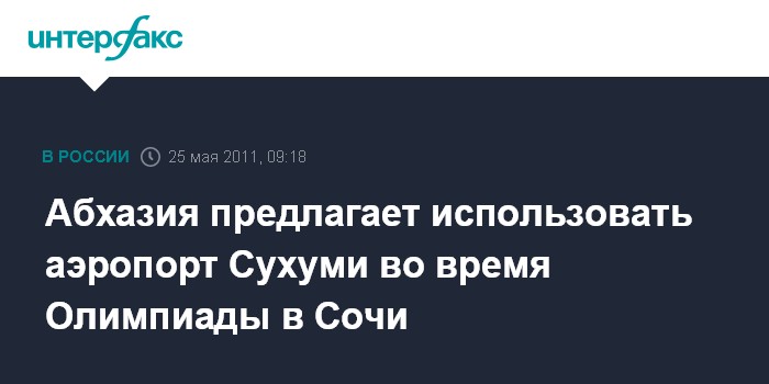 Москва. 25 мая. INTERFAX.RU - Премьер-министр Абхазии Сергей Шамба заявляет, что аэропорт под Сухуми может быть использован в качестве дублера аэропорта Сочи во время проведения Зимней Олимпиады 2014 года.