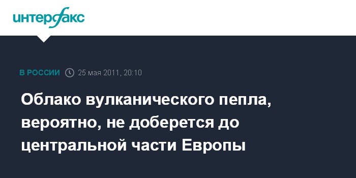 Женева. 25 мая. INTERFAX.RU - Облако вулканического пепла, образовавшееся в результате извержения вулкана в Исландии, не дойдет до Швейцарии и других стран в центральной части Европы, пишет в среду газета "Тан".