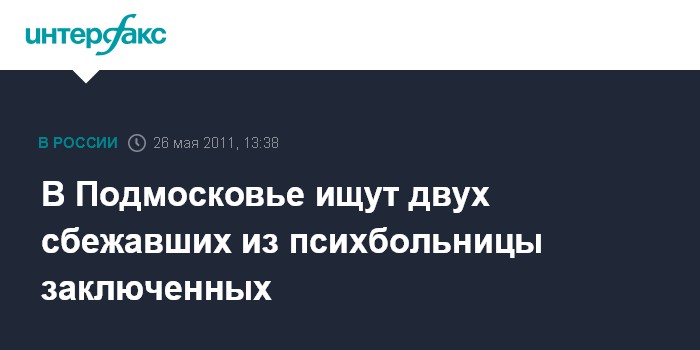 Москва. 26 мая. INTERFAX.RU - Двое заключенных сбежали из психбольницы в Подмосковье, сообщили "Интерфаксу" в четверг в пресс-службе ГУ МВД России по Московской области.