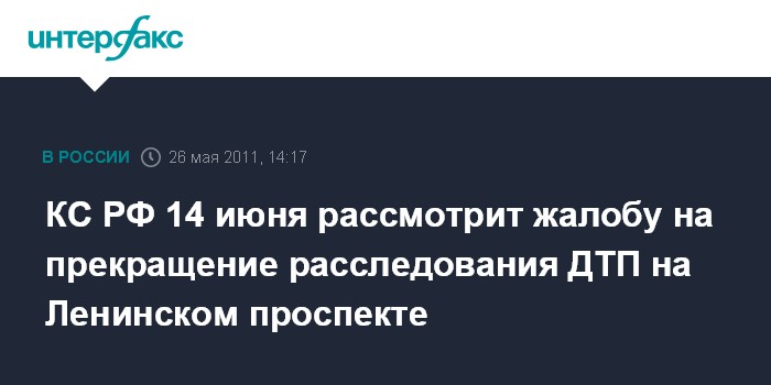 КС РФ 14 июня рассмотрит жалобу на прекращение расследования ДТП на Ленинском проспекте