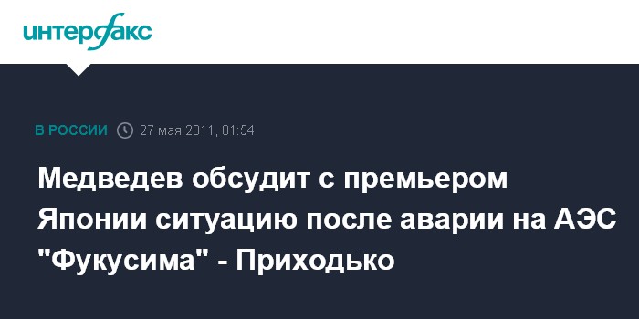 Медведев обсудит с премьером Японии ситуацию после аварии на АЭС "Фукусима" - Приходько
