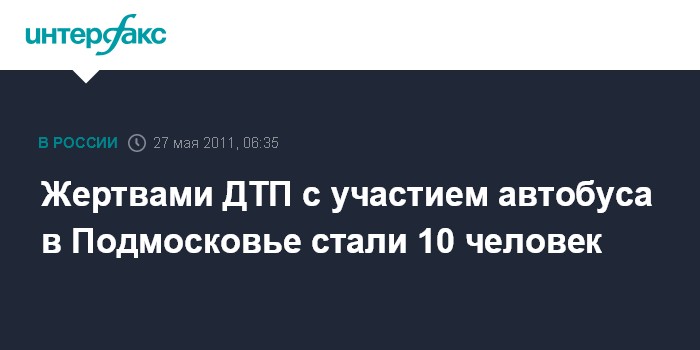 Москва. 27 мая. ИНТЕРФАКС - В Подмосковье в результате ДТП с участием пассажирского автобуса и КамАЗа погибло не менее 10 человек, сообщил "Интерфаксу" утром в пятницу источник в правоохранительных органах.