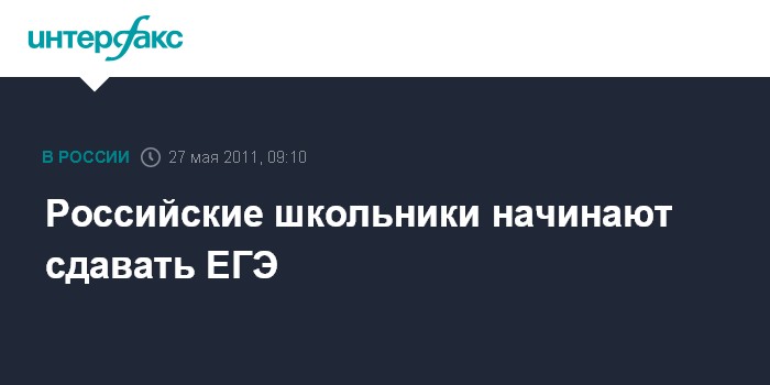 ЕГЭ проводится в 2011 году с 27 мая по 20 июня. 30 мая выпускники будут сдавать русский язык, а 6 июня - математику.