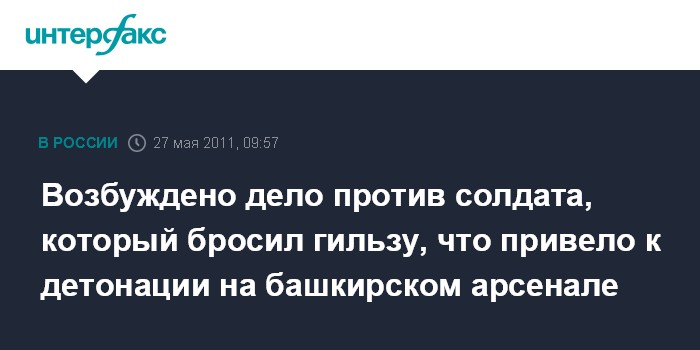 Возбуждено дело против солдата, который бросил гильзу, что привело к детонации на башкирском арсенале