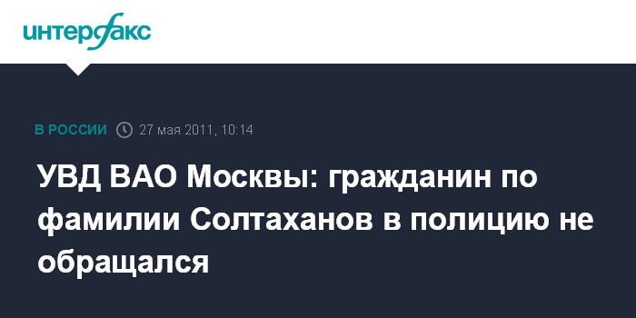 УВД ВАО Москвы: гражданин по фамилии Солтаханов в полицию не обращался