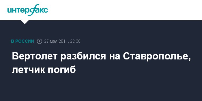 Ставрополь. 27 мая. INTERFAX.RU - На Ставрополье упал вертолет малой авиации, опылявший сельскохозяйственные посевы, погиб летчик, сообщил агентству "Интерфакс-Юг" руководитель пресс-службы ГУ МЧС РФ по Ставропольскому краю Олег Дегтярев.