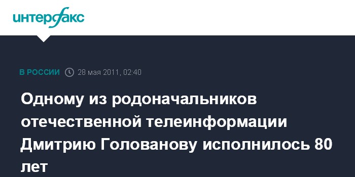 Москва. 28 мая. ИНТЕРФАКС - Один из старейших тележурналистов страны Дмитрий Голованов отмечает в субботу, 28 мая, 80-летний юбилей.