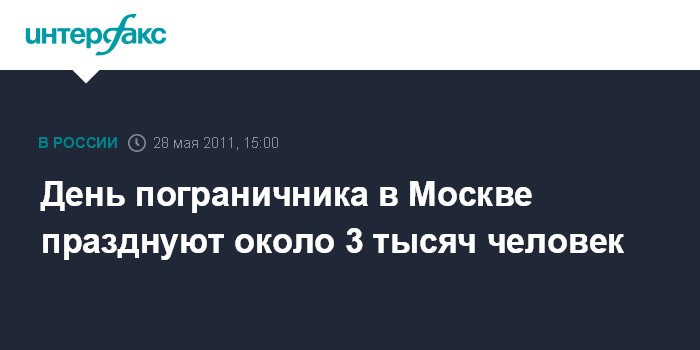 Москва. 28 мая. INTERFAX.RU - Празднование Дня пограничника в Москве проходит без происшествий. "В настоящее время, по данным на 14:30 мск, на разных площадках в Москве отмечают День пограничника около 3 тыс. человек", - сообщил "Интерфаксу" руководитель оперативного штаба по обеспечению безопасности в Москве, врио командира ОМОН Вячеслав Хаустов. По его словам, празднование проходит в доброжелательной обстановке. "Каких-либо конфликтов замечено нами не было", - сказал В.Хаустов.
