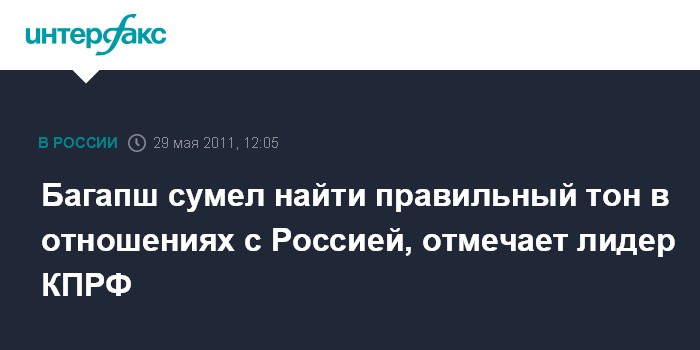 Москва. 29 мая. INTERFAX.RU - Лидер КПРФ Геннадий Зюганов считает, что президент Абхазии Сергей Багапш, скончавшийся в Москве, был масштабной политической фигурой, и отмечает его огромный вклад в укрепление разносторонних контактов между Москвой и Сухуми.