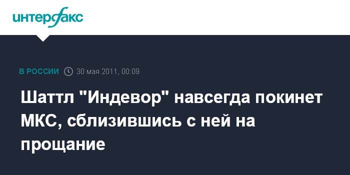 Вашингтон. 30 мая. ИНТЕРФАКС-АВН - Американский корабль многоразового использования "Индевор" с шестью астронавтами в понедельник отчалит от Международной космической станции (МКС), где он провел около 12 дней, сообщает Национальное аэрокосмическое агентство США.