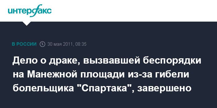 Дело о драке, вызвавшей беспорядки на Манежной площади из-за гибели болельщика "Спартака", завершено