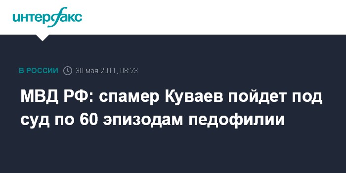 МВД РФ: спамер Куваев пойдет под суд по 60 эпизодам педофилии