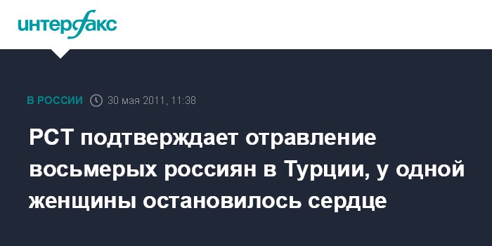 РСТ подтверждает отравление восьмерых россиян в Турции, у одной женщины остановилось сердце