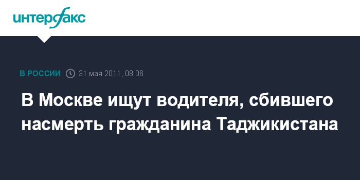 Москва. 31 мая. INTERFAX.RU - На востоке Москвы в районе дома 37 по Свободному проспекту автомобиль сбил насмерть гражданина Таджикистана, работавшего в столице дворником, сообщил "Интерфаксу" в понедельник вечером источник в правоохранительных органах.