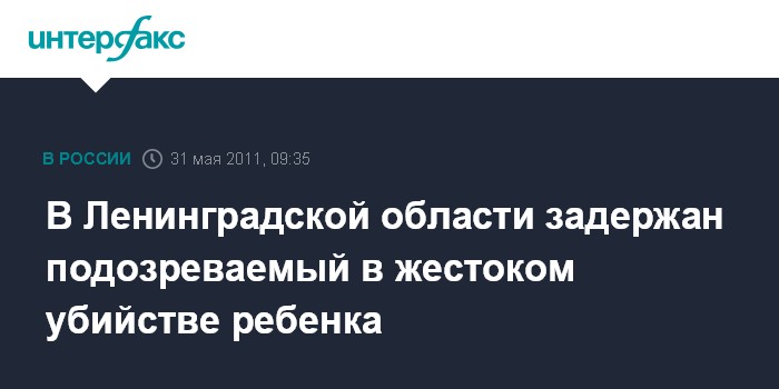 Москва. 31 мая. INTERFAX.RU - Убийство 11-летней школьницы совершено в Ленинградской области, сообщил во вторник "Интерфаксу" источник в правоохранительных органах.
