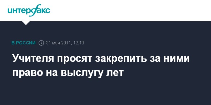 Москва. 31 мая. INTERFAX.RU - Председатель Всероссийского педагогического собрания (ВПС) Валентина Иванова предлагает, чтобы за учителями было закреплено право на выслугу лет.