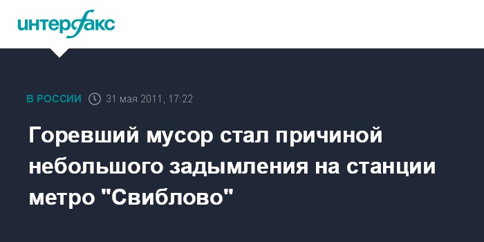 Он добавил, что в ходе проверки было установлено, что источником дыма является мусор, горевший в коллекторе, недалеко от вентиляционной шахты забора воздуха, через которую небольшое количество дыма и попало на станцию.