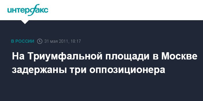 Москва. 31 мая. INTERFAX.RU - Трое известных оппозиционеров: Илья Яшин, входящий в руководство "Солидарности", лидер "Левого фронта" Сергей Удальцов и активист этого движения Константин Косякин задержаны во вторник на Триумфальной площади в Москве.