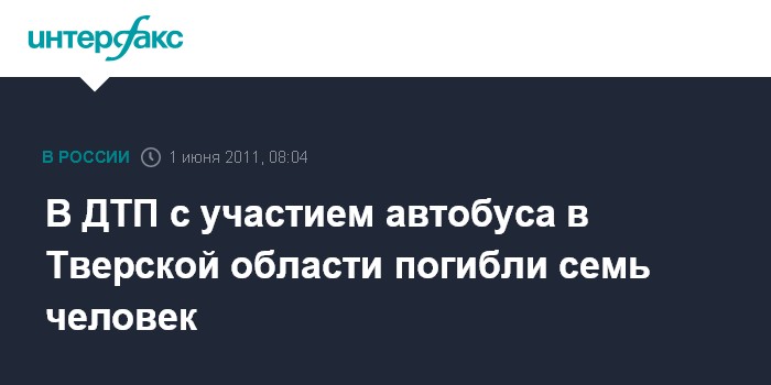 Москва. 1 июня. INTERFAX.RU - Междугородный автобус столкнулся в Тверской области с легковым автомобилем, погибли семь человек, сообщили "Интерфаксу" в ГУ МЧС РФ по региону.