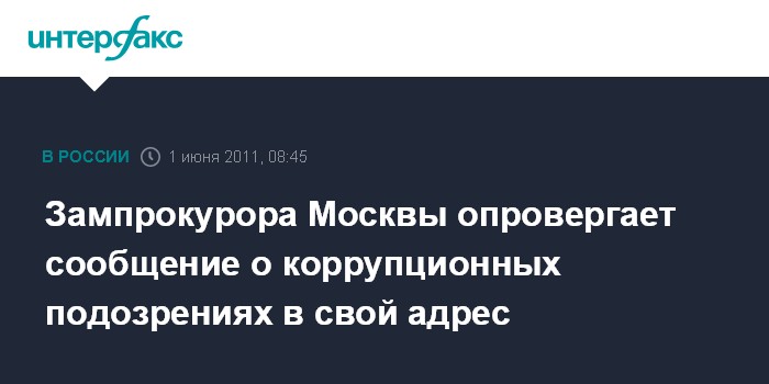 Зампрокурора Москвы опровергает сообщение о коррупционных подозрениях в свой адрес