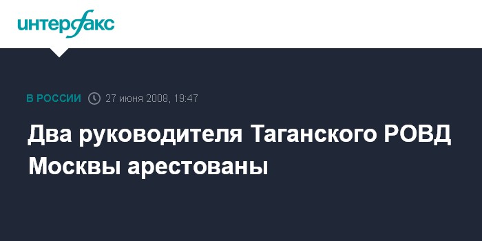 Москва. 27 июня. ИНТЕРФАКС - Хамовнический суд Москвы выдал санкцию на арест начальника Таганского РОВД и его заместителя, подозреваемых в получении взятки.