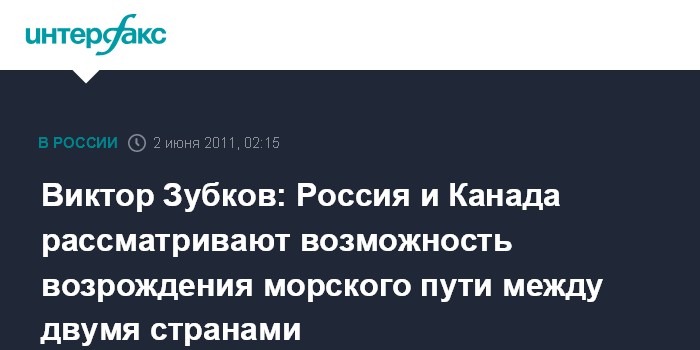 Виктор Зубков: Россия и Канада рассматривают возможность возрождения морского пути между двумя странами