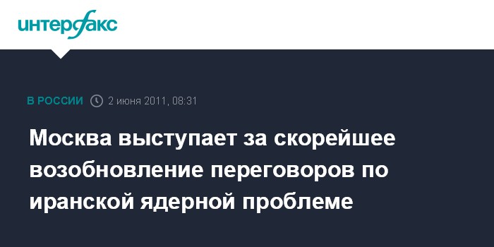 Москва выступает за скорейшее возобновление переговоров по иранской ядерной проблеме