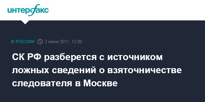 Москва. 2 июня. INTERFAX.RU – Следственный комитет РФ намерен разобраться в причинах распространения в СМИ ложной информации о получении взятки следователем на транспорте в Москве.