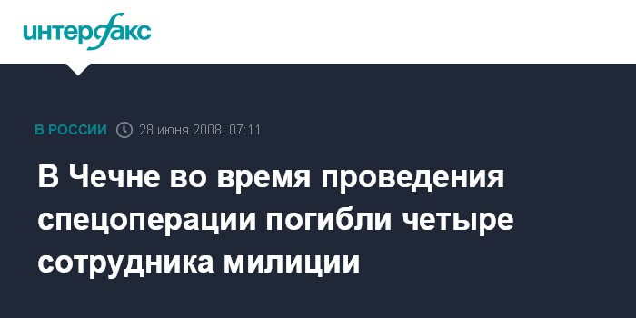 В Чечне во время проведения спецоперации погибли четыре сотрудника милиции