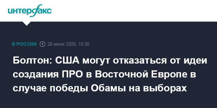 Болтон: США могут отказаться от идеи создания ПРО в Восточной Европе в случае победы Обамы на выборах