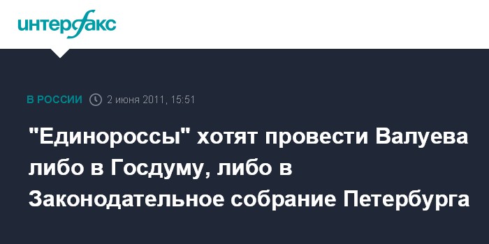 "Единороссы" хотят провести Валуева либо в Госдуму, либо в Законодательное собрание Петербурга