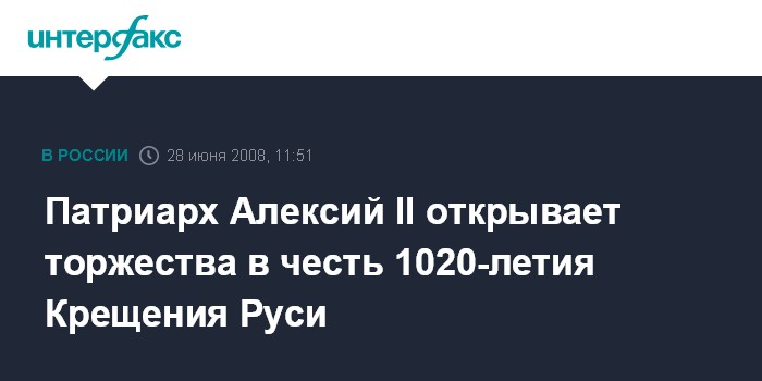 Патриарх Алексий II открывает торжества в честь 1020-летия Крещения Руси