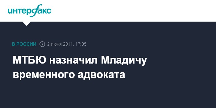 Белград. 2 июня. INTERFAX.RU - Белградский адвокат Александар Алексич по решению Международного трибунала по бывшей Югославии (МТБЮ) назначен временным юридическим защитником бывшего военного лидера боснийских сербов Ратко Младича, передает в четверг сербский телерадиоканал РТС.