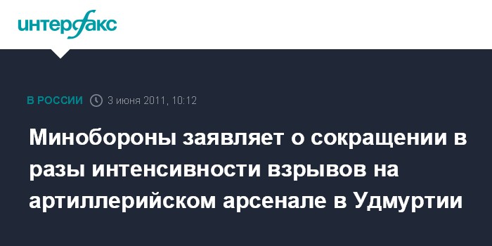 Москва. 3 июня. INTERFAX.RU - Интенсивность взрывов снарядов на 102 арсенале артиллерийских боеприпасов в Удмуртии по данным на 10:00 мск снизилась в три-четыре раза, сообщил "Интерфаксу-АВН" в пятницу официальный представитель Минобороны РФ полковник Игорь Конашенков.