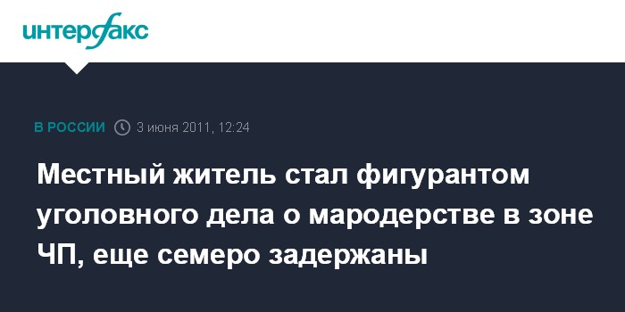 "Еще семь человек задержаны. Их причастность (к мародерству) проверяется", - уточнил министр.