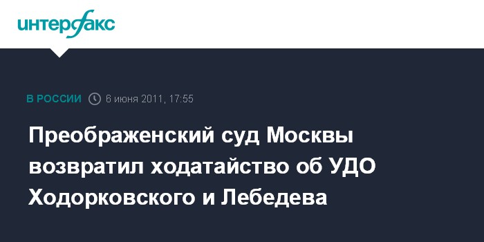 Преображенский суд Москвы возвратил ходатайство об УДО Ходорковского и Лебедева
