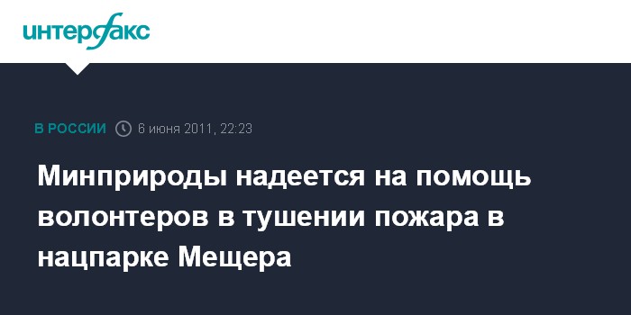 Москва. 6 июня. ИНТЕРФАКС - Минприроды РФ обращается к волонтерским движениям и экологическим организациям Владимирской и Московской областей с просьбой принять участие в ликвидации нового пожара на территории национального парка "Мещера", сообщили "Интерфаксу" в министерстве в понедельник вечером.
