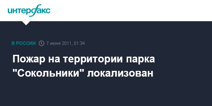 Москва. 7 июня. ИНТЕРФАКС- Возгорание в столичном парке "Сокольники" локализовано, сообщил "Интерфаксу" источник в правоохранительных органах.