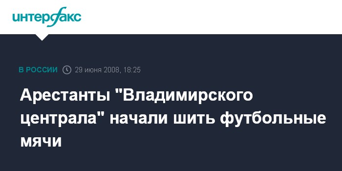 Москва. 29 июня. ИНТЕРФАКС - Заключенные знаменитого "Владимирского централа" освоили выпуск самого популярного спортивного снаряда последних недель - футбольного мяча.