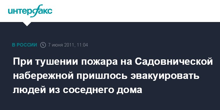Москва. 7 июня. INTERFAX.RU - Сотрудники офисного здания, примыкающего к горящему дому на Садовнической набережной в Москве, эвакуированы, сообщил "Интерфаксу" источник в правоохранительных органах.