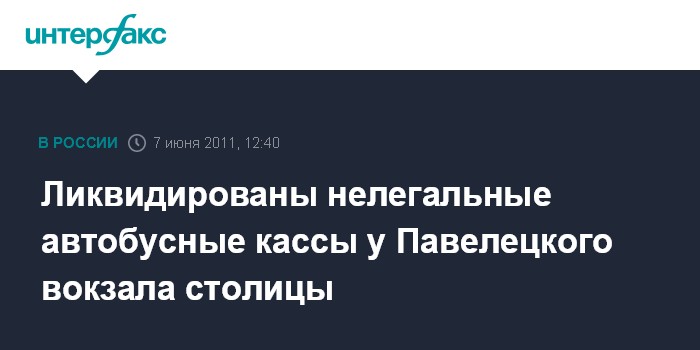 Москва. 7 июня. INTERFAX.RU - Неподалеку от Павелецкого вокзала в Москве остановлена работа нелегальных касс по продаже билетов на междугородние автобусные рейсы, сообщили "Интерфаксу" в пресс-службе префектуры Центрального административного округа во вторник.
