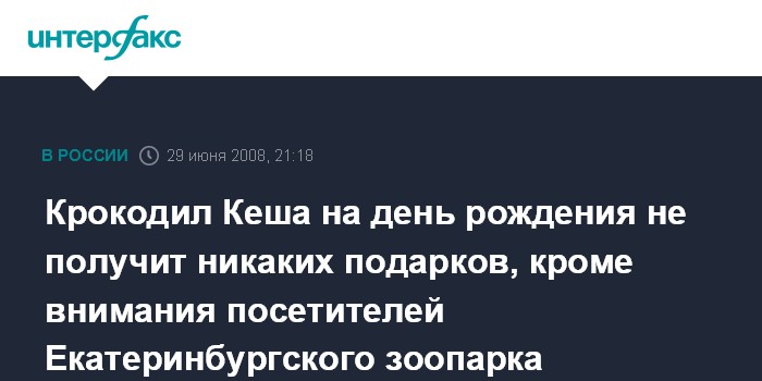 Екатеринбург. 29 июня. ИНТЕРФАКС-УРАЛ - Питомец екатеринбургского зоопарка крокодил Кеша 6 июля отметит свое 15-летие.