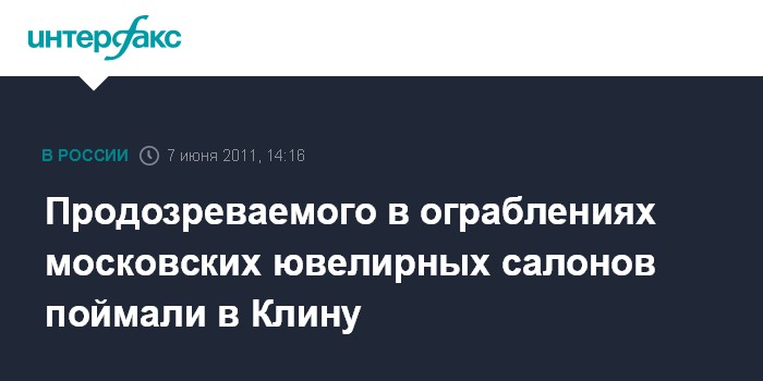 Продозреваемого в ограблениях московских ювелирных салонов поймали в Клину