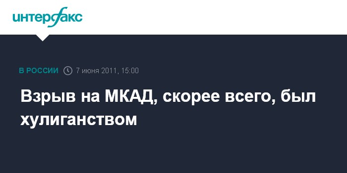 Москва. 7 июня. INTERFAX.RU - Самодельное взрывное устройство сработало на юге Москвы на МКАД во вторник утром, сообщили "Интерфаксу" в пресс-службе ГУ МВД России по Москве.