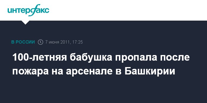 100-летняя бабушка пропала после пожара на арсенале в Башкирии