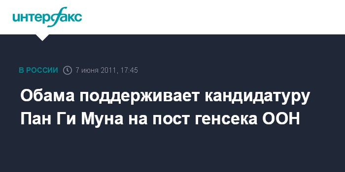Вашингтон. 7 июня. INTERFAX.RU - Президент США Барак Обама поддержал решение генерального секретаря ООН Пан Ги Муна добиваться переизбрания на второй срок, заявил во вторник представитель Белого дома Джей Карни.