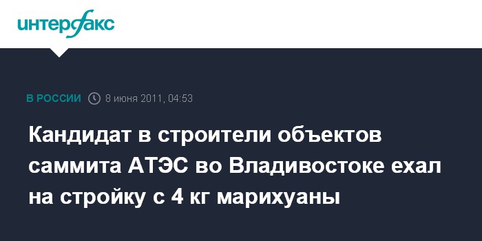 По ее словам, 47-летний перевозчик марихуаны намеревался трудоустроиться на острове Русский, где в настоящее время идет масштабное строительство объектов саммита АТЭС-2012.