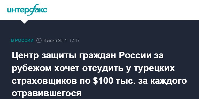 Центр защиты граждан России за рубежом хочет отсудить у турецких страховщиков по $100 тыс. за каждого отравившегося